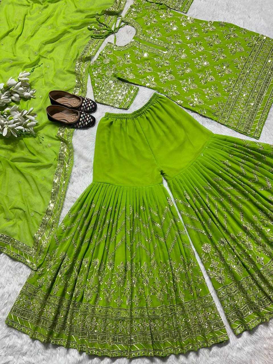 Plazzo Fabrics: Heavy Faux Georgette With 5mm Embroidery Sequence Fully Flair