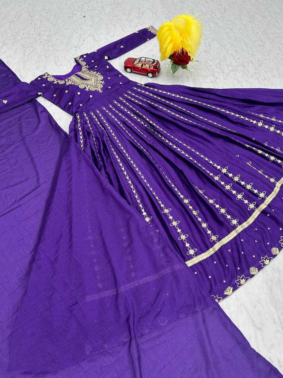 Pc 435 Violet Chinon Embroidery Sequence Gown